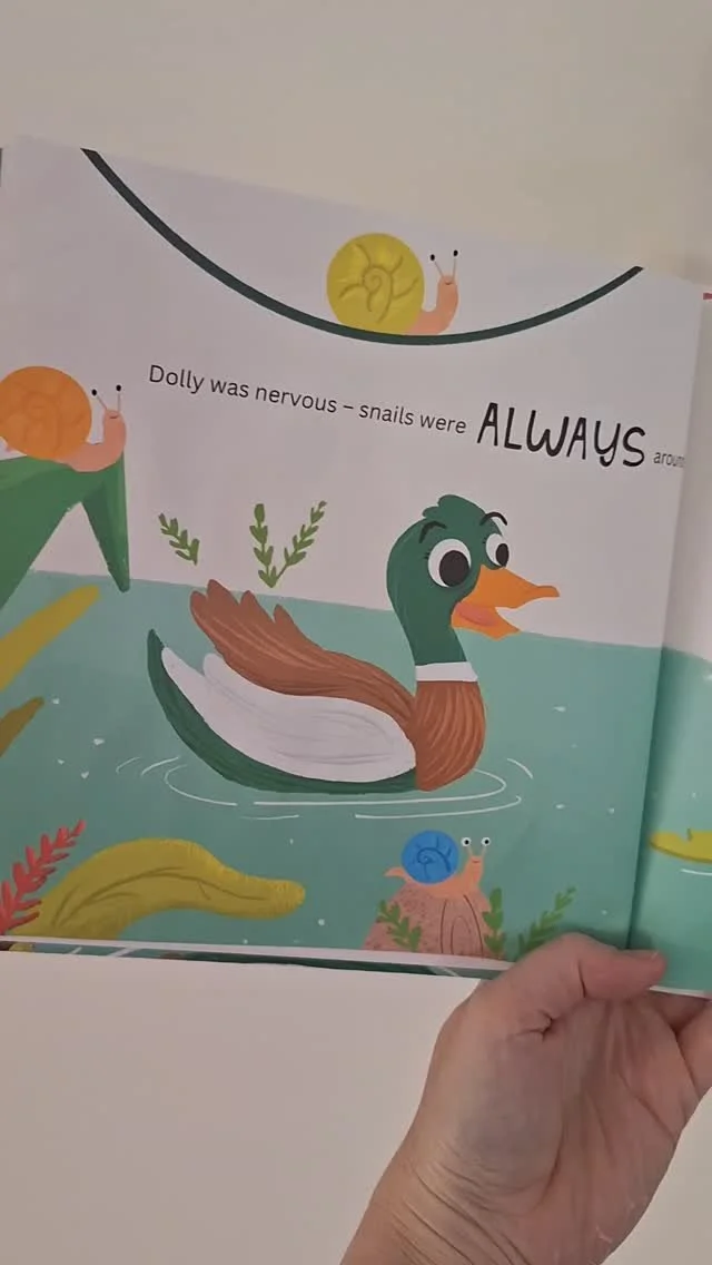 Dolly the duck is invited to a birthday party, but she is too afraid to go; she has a food allergy - she is allergic to snails. Dolly must decide whether the party is a safe and fun place for her to play, and her friend helps her to unpack a fear of her allergy. Dolly eventually feels her allergies are understood and the party becomes a safe place for her to play.
